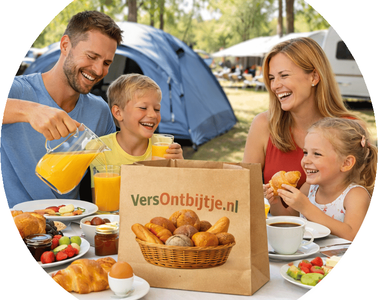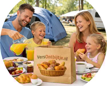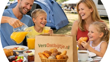 Heerlijk ontbijt met verse broodjes op uw vakantiepark, vakantiewoning of camping in de omstreken van Arnhem, in de ochtend bezorgd.